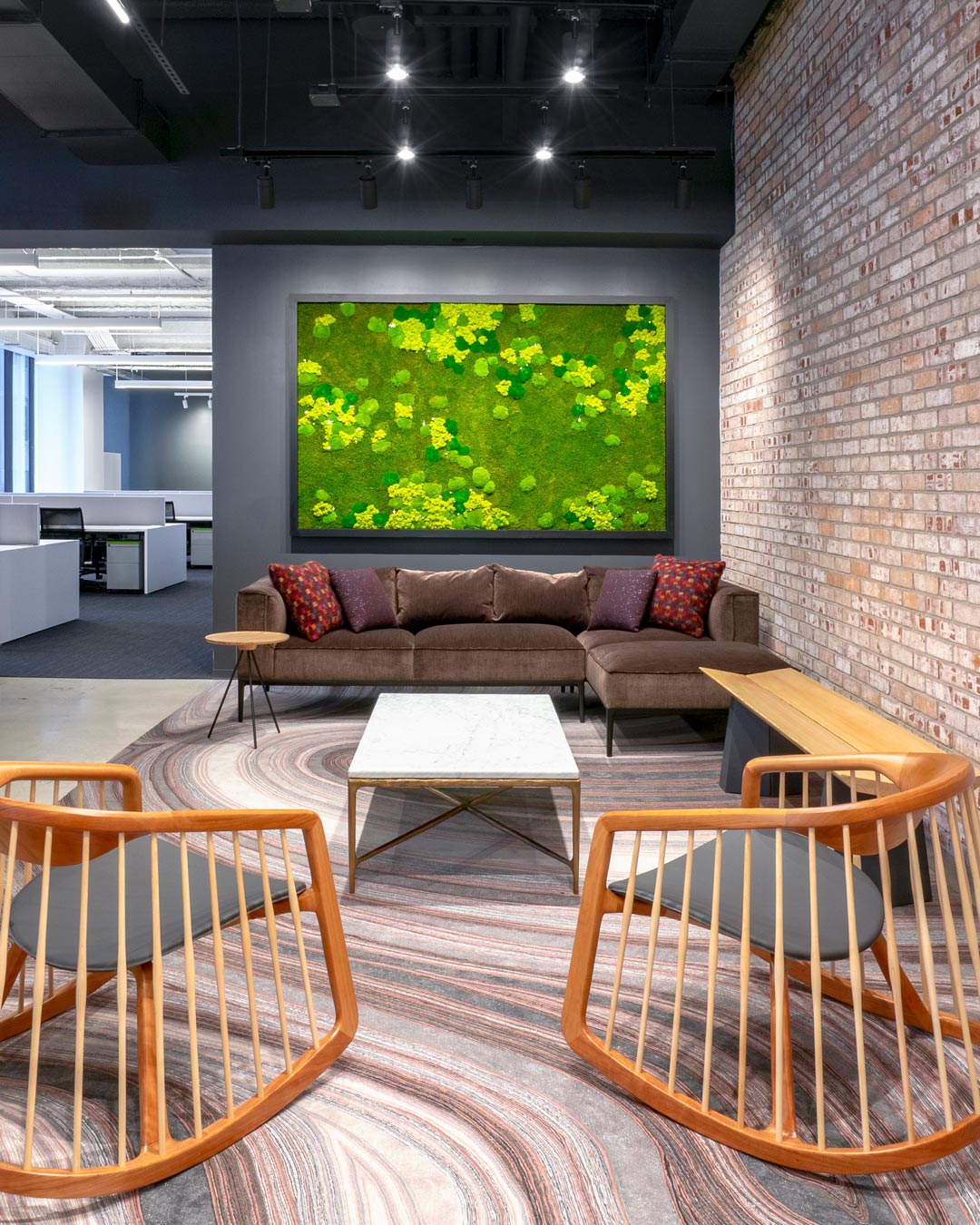 Next, incorporate nature into your design. Adding plants or setting up a small indoor water fountain can reduce stress and make you feel more relaxed. Indoor gardens crafted with all natural plants and moss walls offer one of the best ways to apply neuroarchitecture in designed space. Also, think about your color choices. Soft, soothing colors like blues, greens, and earth tones can help create a calm environment, while bright colors might energize some spaces.
