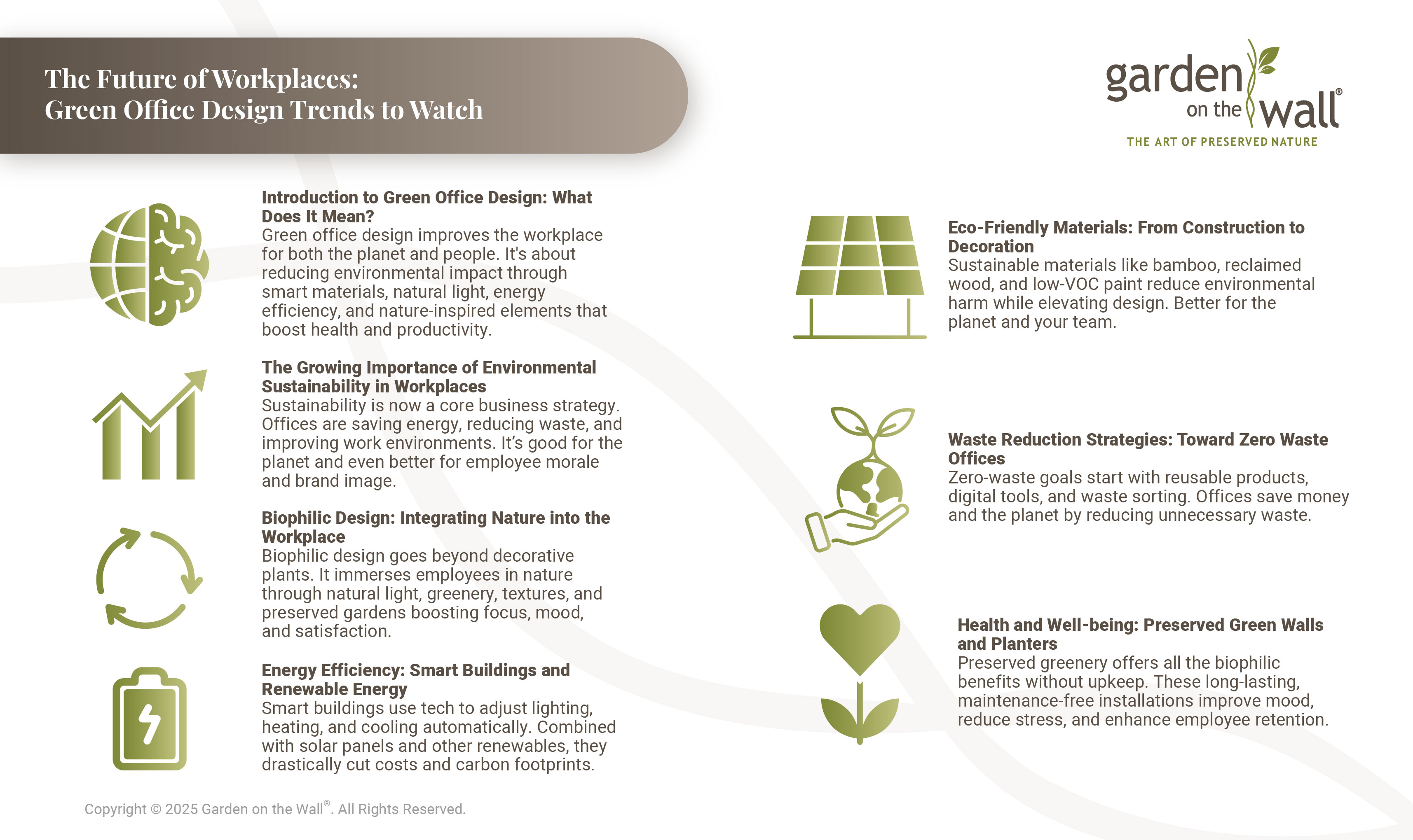 For more information on this subject, read this article: The Future of Office Design: Nature-Inspired Collaborative Workplace Environments and other related information, please visit our website: www.gardenonthewall.com