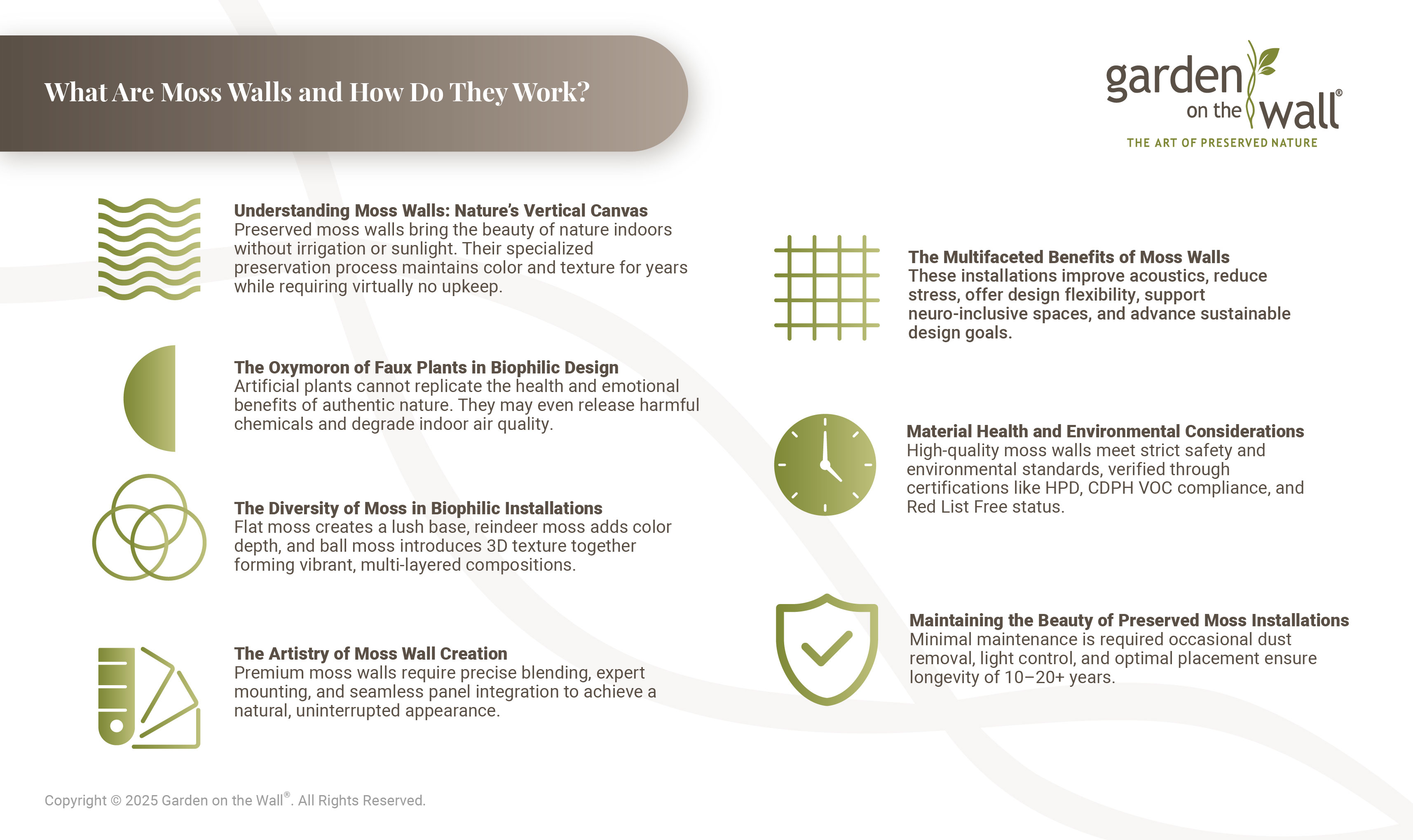 Ready to integrate moss walls that provide authentic nature connection, wellness benefits, and lasting design impact? The full article highlights how high-quality preserved moss installations transform interiors into enduring biophilic masterpieces that nurture health, well-being, and sustainability.