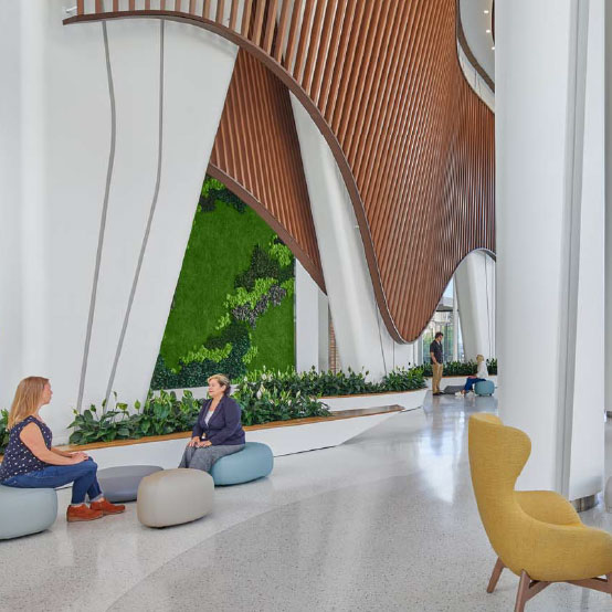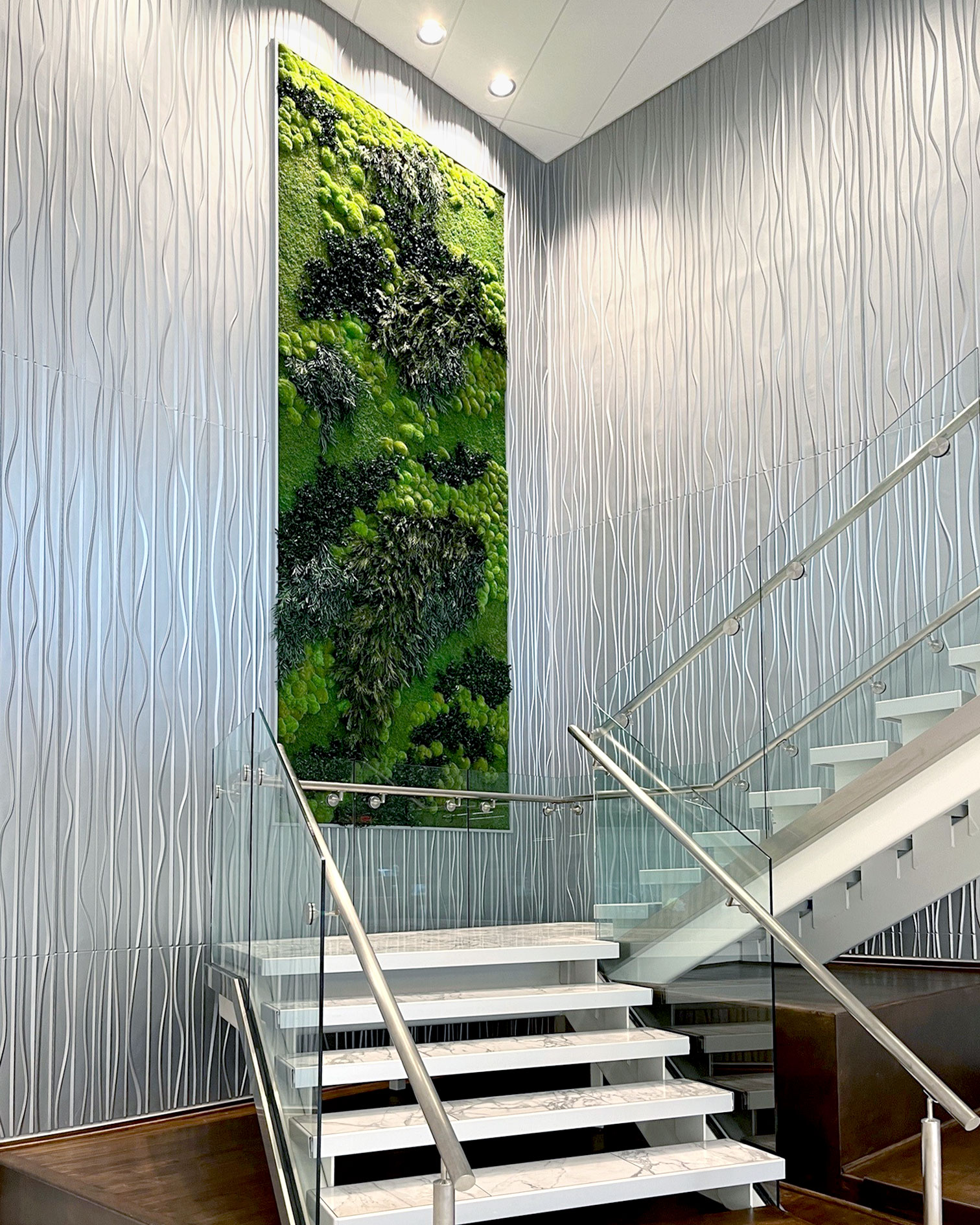 🎨 Low-Maintenance Biophilic Integration: Preserved gardens, moss walls, and planter inserts provide the benefits of greenery without maintenance, combining aesthetic appeal with psychological and sensory benefits.
