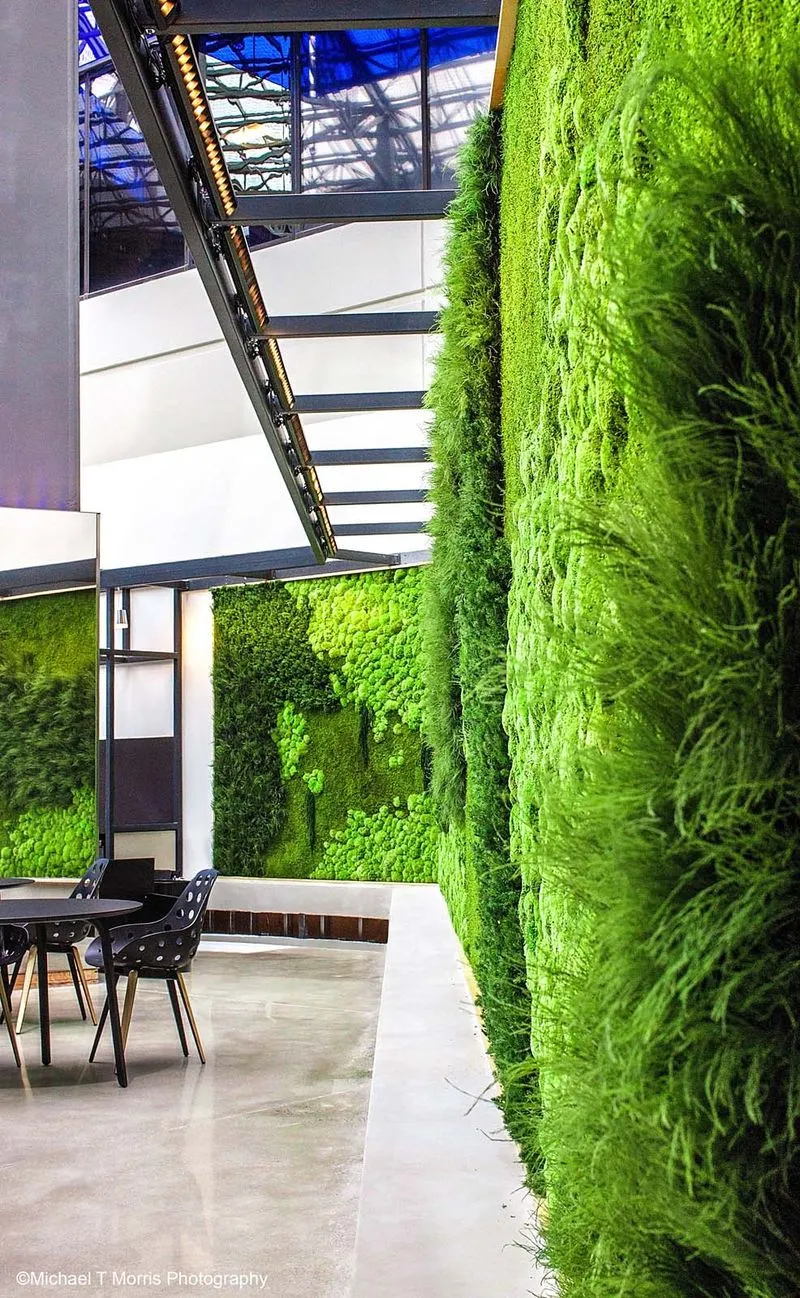 Preserved moss and preserved foliage refer to natural moss and plants that have undergone a special preservation process to maintain their fresh, vibrant appearance, texture and color for an extended period (10+ years) without requiring water, sunlight, soil, or any other maintenance. This innovative process allows the beauty and benefits of nature to be brought indoors, creating stunning biophilic installations that remain vibrant and alluring year-round without the hassle of keeping live plants alive.