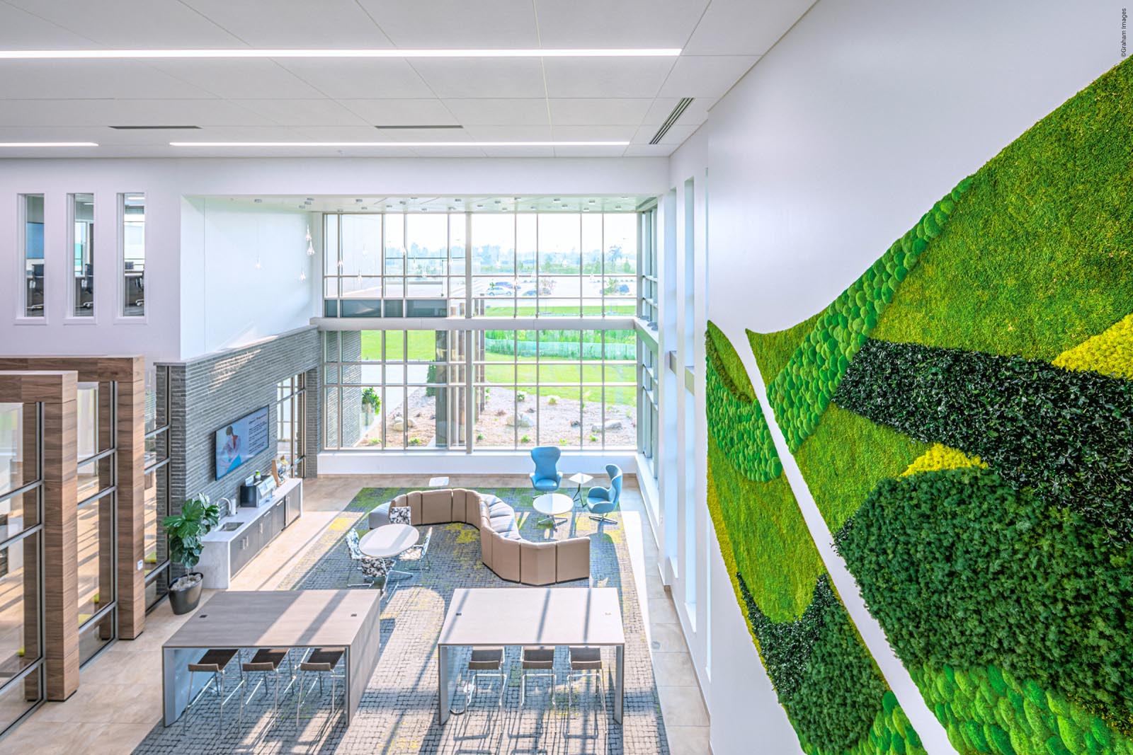 Biophilia is Nature’s Way of Achieving Workplace Zen! GOTW’s large custom gardens transform Nature’s Way’s offices into an oasis of biophilic wellness. Inspired by the company’s leaf-shaped logo, the biodiverse garden installations are the ultimate expression of the company’s core values – all-natural ingredients and a ‘green’ mindset, with a dedication to empowering personal wellness. Composed of forest, fern, flower, and moss species in their natural colors, the garden installations motivate and inspire employees, underscoring the company’s mission. For progressive, nature-focused companies like this, GOTW’s gardens are the perfect accoutrement.