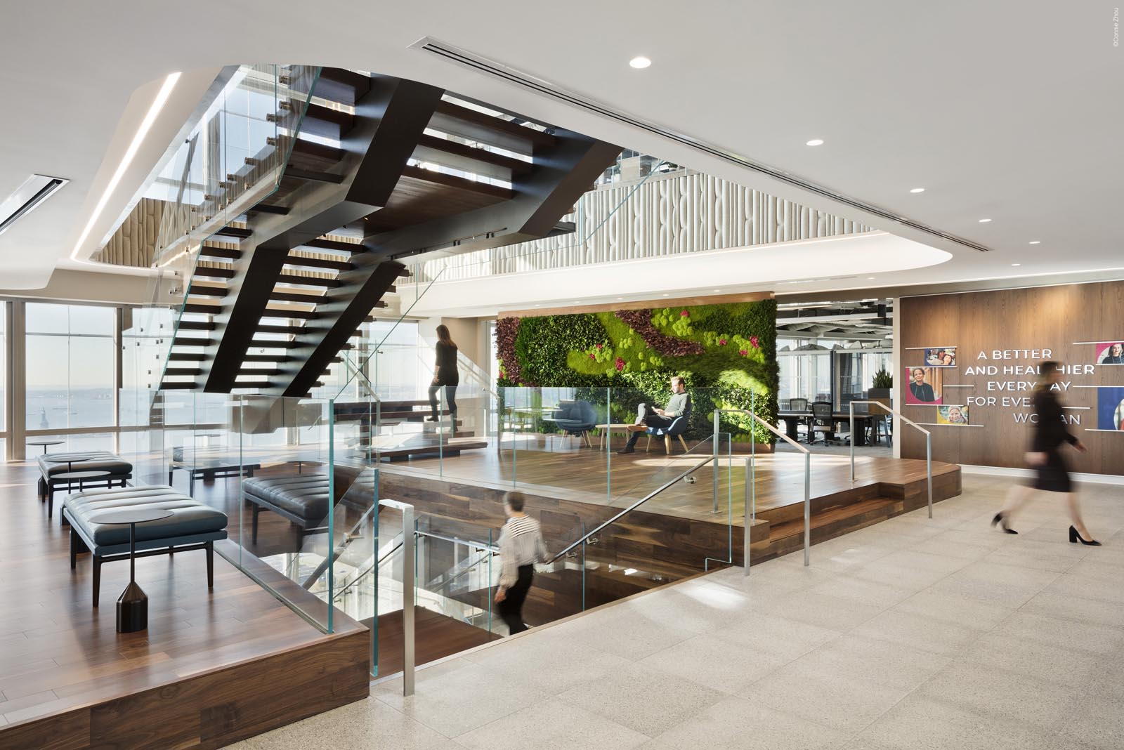 Biophilia Provides a Stunning Indoor Greenscape! GOTW’s soaring installation has employees seeing green in the offices of this trading, investment, and information solutions company in Jersey City, NJ. Spanning two stories, GOTW’s all-natural indoor garden provides a towering greenscape in the open, modern space, flanking the floating staircase. Featuring biodiversity with a portfolio of mosses plus forest and flower foliage elements, the garden also has compelling cut-out windows to contribute to the openness and flow of light in the office. As a growing number of corporate clients are realizing, GOTW is an investment in workplace productivity, rejuvenation, and positive outlook.